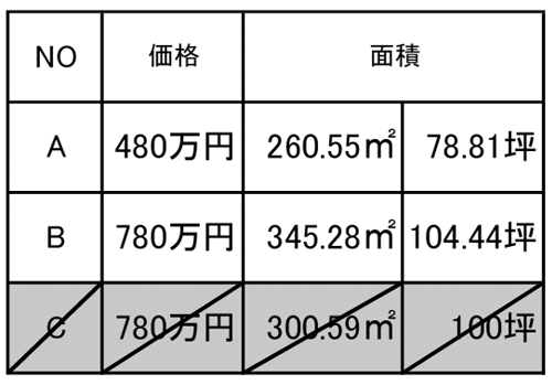この土地は、土地売買契約後3ヶ月以内に当社と建物の建築請負契約を締結することを条件に販売します。この期間内に建築請負契約を締結されなかった場合には、土地売買契約は白紙となり、受領した手付金等の土地代金は全てお返しします。 - 土地資料