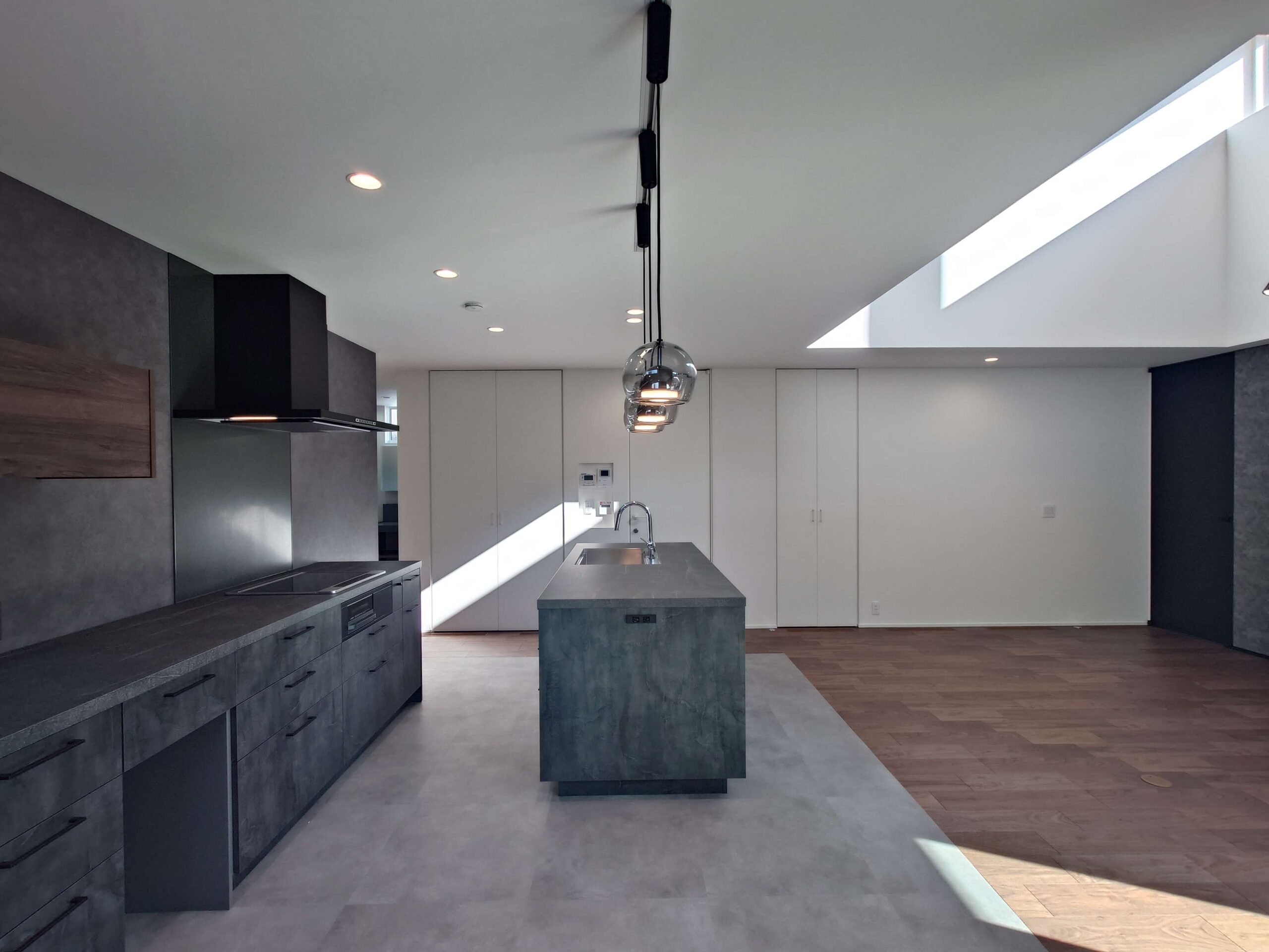 少し濃い目の素材をポイント使いし、空間全体を引き締めたシックな室内。