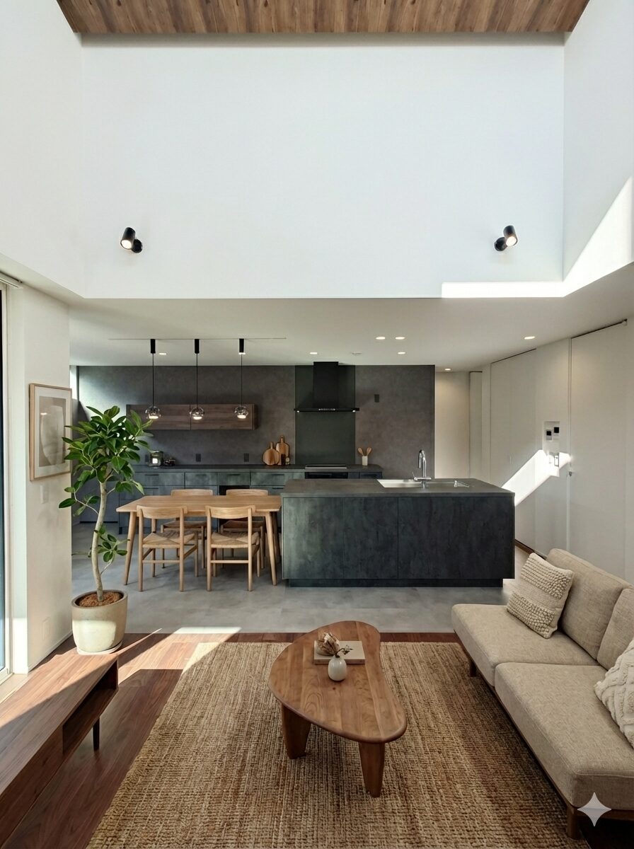 高天井を採用し、東南に設けた窓からLDK全体に十分な光が降りそそぎます。