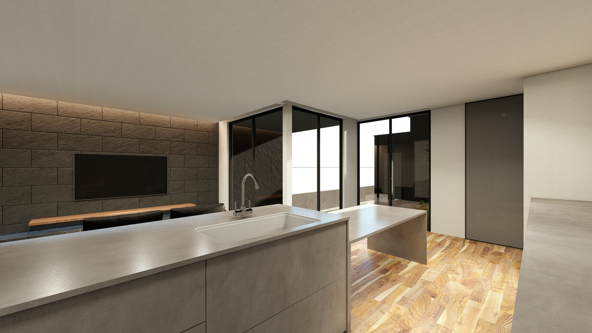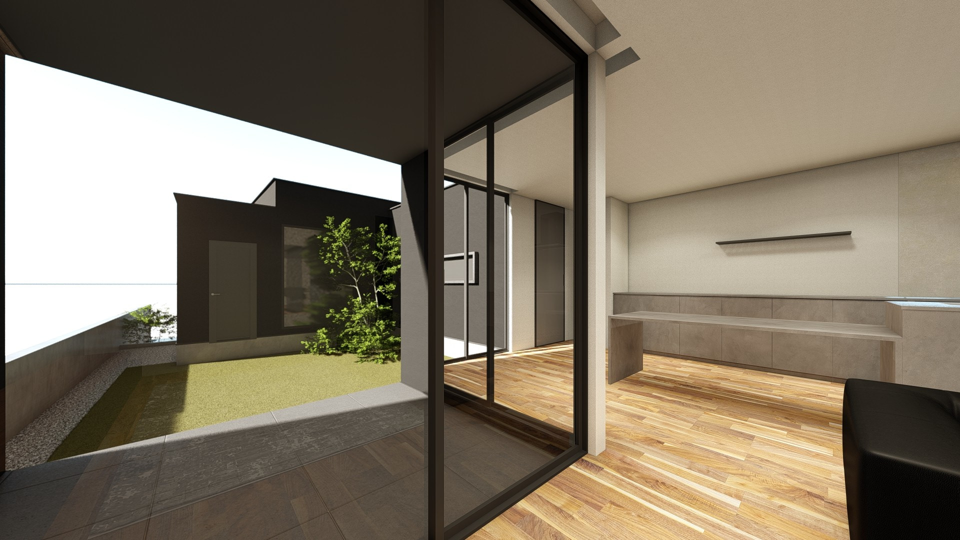 さらに、暮らしの中心にはタイル仕上げの中庭を設け、
