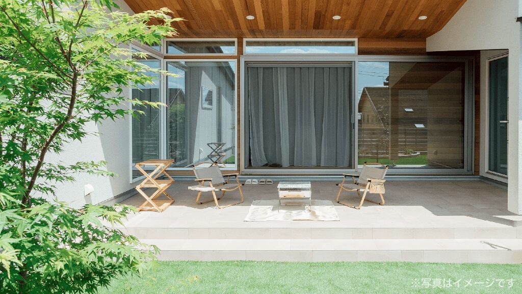 外からの視線を遮りながら、家族が心からくつろげるプライベート空間を実現。
