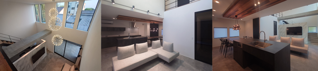 風情ある街並みが残る地域でオーナー様のこだわりの住まいが完成しました。 カーテンレスで直接光が入るリビングにしたい、でも、周辺からのプライバシーも確保したい、なかなか両立しづらい要望も中庭と吹き抜けを上手に配置することで気持ちのよいリビングに。素材や設備にもこだわりホテルライクで非日常的な空間を自宅で満喫。加えてこだわりの照明器具や家具がより上質な心地よさを演出してくれます。自分たちの生活スタイルに合わせてとことん調整した完全自由設計ならではの間取りも必見。 土地選びからこだわりを詰め込んだ素敵な住まいをぜひご体感ください。