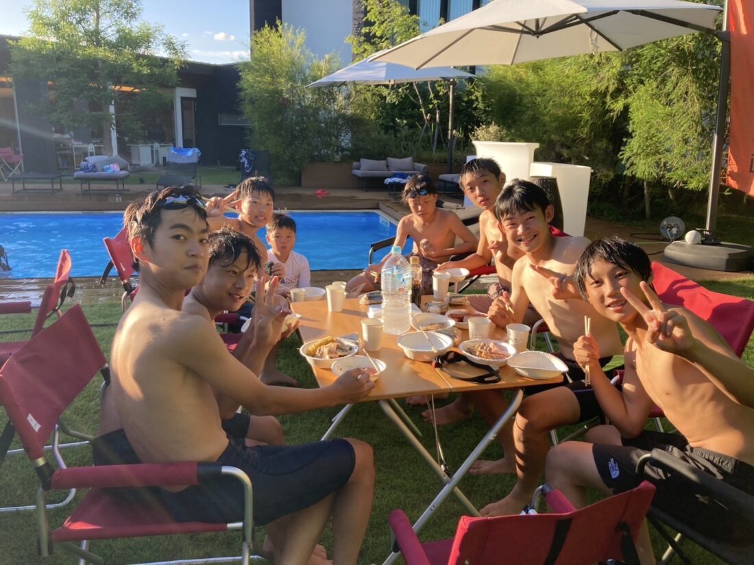 日頃、全力で夢に向かって走り続ける子どもたちに、ひとときの“夏休み”を。そんな思いで、大野VILLAのプールを特別開放し、青空の下でバーベキューを楽しんでもらいました。