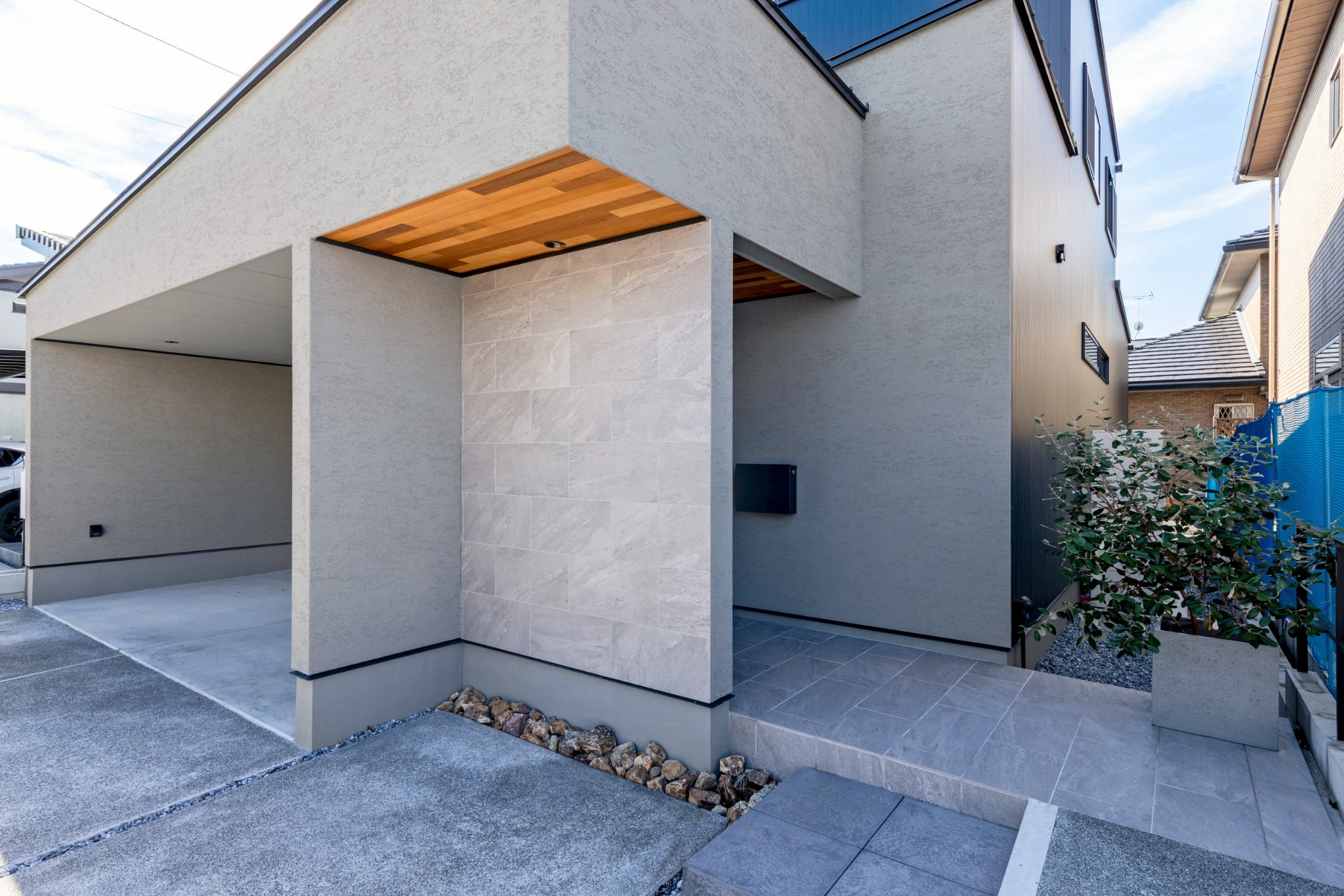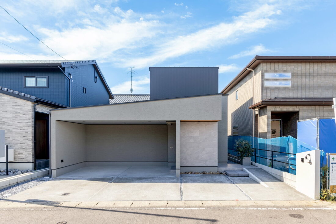 外壁の素材感や色の組み合わせがほどよい存在感を生み、