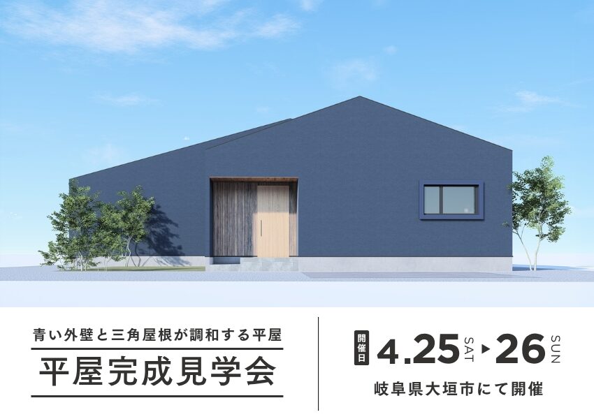 【青い外壁と三角屋根が調和する平屋】完成見学会